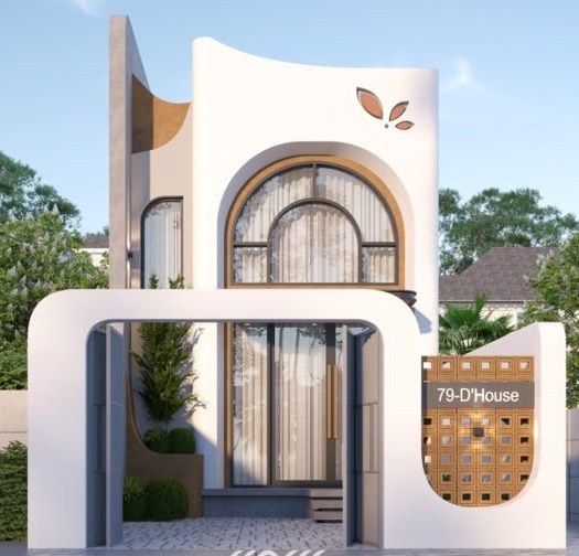 Điểm nhấn lớn nhất của ngôi nhà chính là mặt tiền mang phong cách bo cong hiện đại, vừa mềm mại vừa tạo sự khác biệt so với các mẫu nhà ống truyền thống. Hệ cửa kính vòm cao kịch trần không chỉ tạo hiệu ứng thẩm mỹ mà còn giúp đón sáng tự nhiên tối đa, mang lại cảm giác rộng rãi và thoáng đãng cho không gian bên trong.
