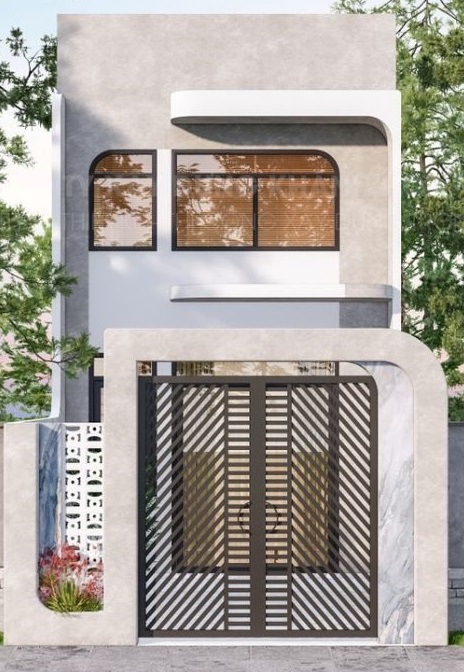 Ngôi nhà gác lửng 4x16m mang phong cách hiện đại, tinh tế, nổi bật nhờ kiến trúc mặt tiền trẻ trung với những đường nét vuông vức kết hợp bo cong mềm mại. Hệ cổng và cửa chính được thiết kế độc đáo, vừa đảm bảo an toàn vừa tạo điểm nhấn thẩm mỹ.