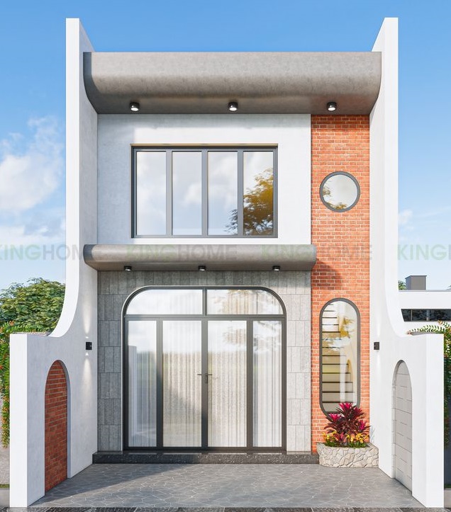 Ngôi nhà gác lửng 5x12m gây ấn tượng mạnh bởi thiết kế mặt tiền hiện đại kết hợp vật liệu gạch ốp trang trí