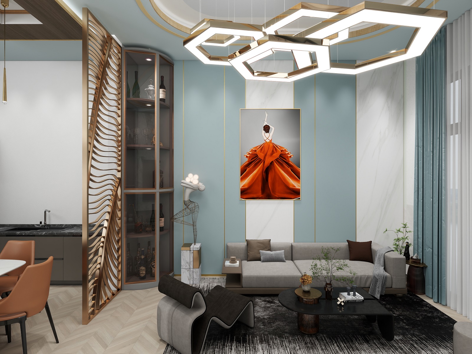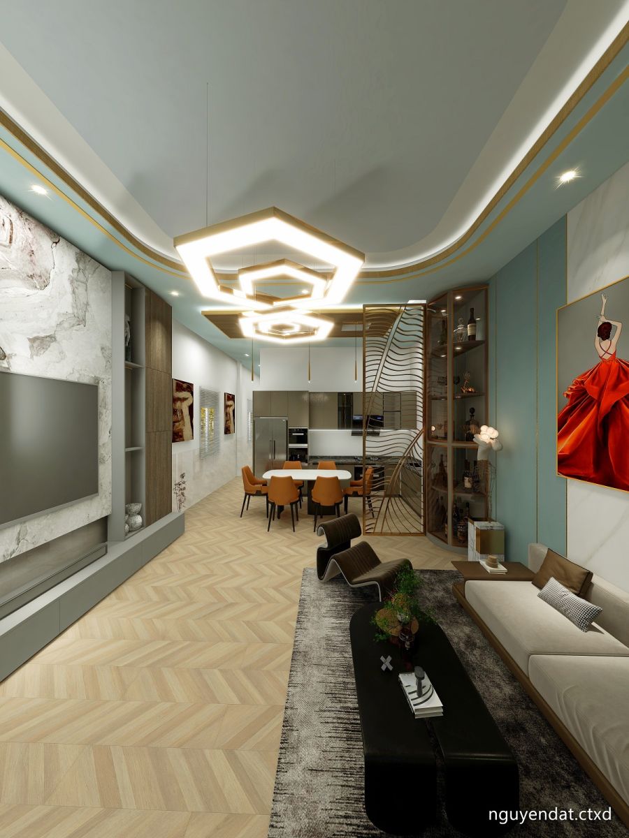 Chiếu sáng: đèn downlight 7–9W, thêm đèn hắt line ở phòng khách để tăng sang nhưng chi phí thấp.