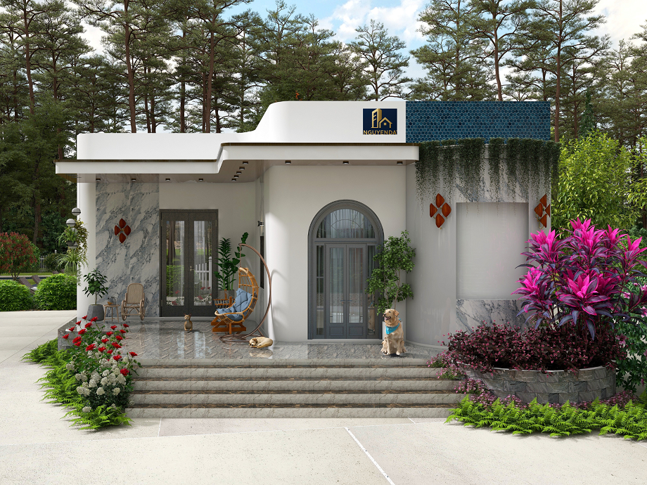 Kiến trúc: Hiện đại tối giản, bo cong mềm, mái bằng chống thấm 3 lớp