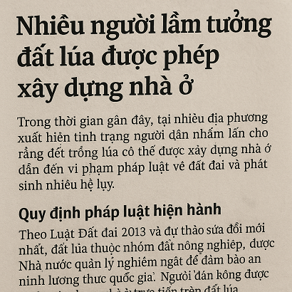 👉 Việc nhầm tưởng đất lúa được phép xây dựng nhà ở là sai lầm phổ biến, nhưng có thể tránh được nếu người dân tìm hiểu kỹ quy định pháp luật và thực hiện thủ tục chuyển đổi hợp lệ.